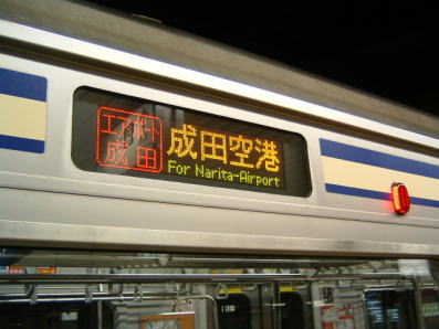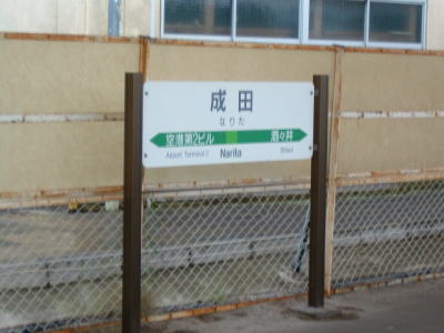 6時14分、成田(なりた)駅に着きました。 東京方向とは逆方向なので、列車は、ずっとガラガラでした。 |