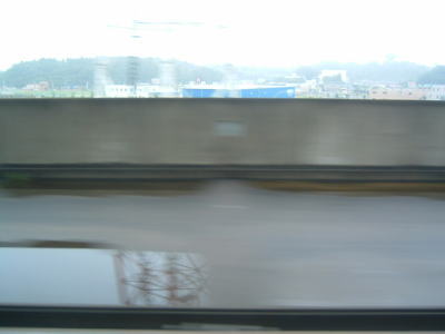 成田駅を出て、しばらくすると、不気味に高架が現れ、その高架線へと入っていきます。 成田新幹線として建設予定だった高架線を使って、成田空港へ進みます。 |