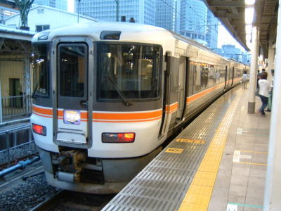 まずは、名古屋駅から、23時55分発の快速「ムーンライトながら」に乗って、東京へ向かいます。 車両は、373系の特急型車両です。 ムーンライトながらに乗るのも、久々です。 |