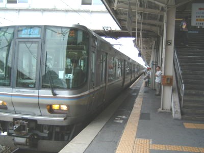 米原から先は、大阪方面からやってきた、223系の新快速、長浜行きに乗車です。 8両編成でやってきました。 |