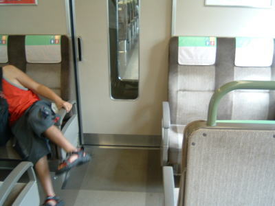 JR九州馬鹿は、空いているのをいいことに、座席に向かって、横になって寝てしまう・・・という始末。