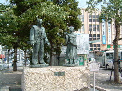 それから、豊臣秀吉と石田光成の銅像もありました。 この地域で、二人は出会ったと書いてありました。 |