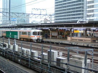 定刻どおり、名古屋駅を発車しました。 近鉄特急の車両が見送ってくれました。 |