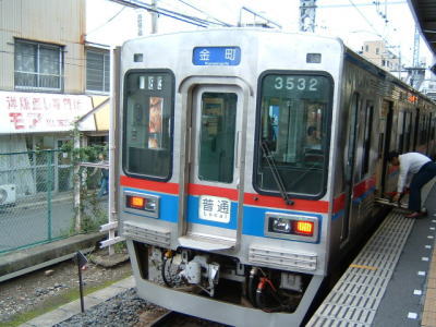 各駅に停車して、終点の京成高砂(けいせいたかさご)駅に到着しました。 ここから、こちらの金町行きに乗り換えます。 |