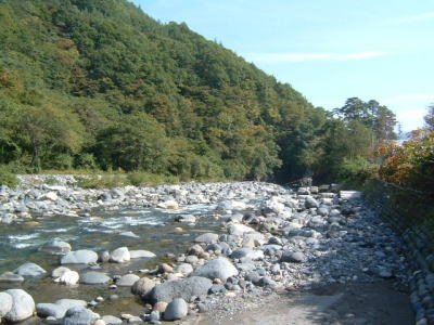 岐阜県の中津川を過ぎると、木曽川もこのように小さな川となります。