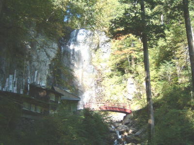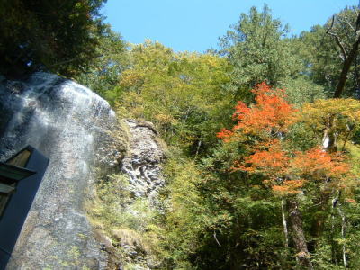 滝の上にある、木々は、すでに色づいていました。 直に、このあたりも紅葉になるのでしょう。 |
