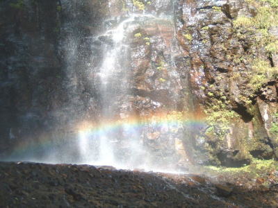 滝の下では、このように虹が見えていました。