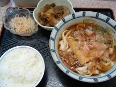 そして、岐阜駅では、早い昼食に、立ち食いそば屋で、きしめん定食を賞味。 きしめんとごはん、それに煮物がついて、500円とかなり安かったです。 |