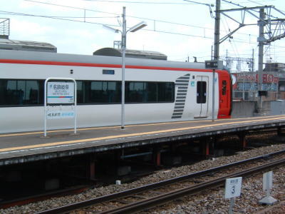 食べた後は、少々時間がありましたので、岐阜駅のホームから撮り鉄。 まずは、2000系の特急ミュースカイです。 この編成は、3両と4両とがありますが、この車両は、4両編成でした。 |