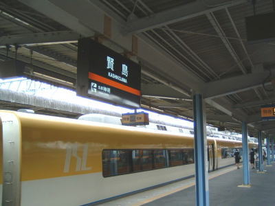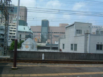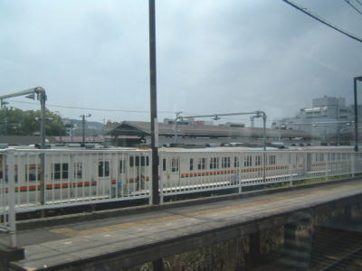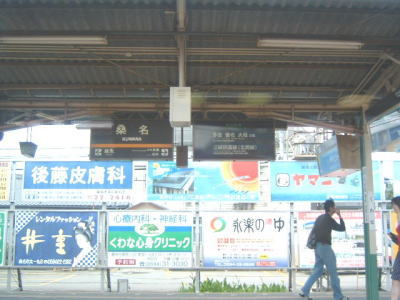 名古屋から約15分、最初の停車駅、桑名(くわな)駅に到着しました。 ここでは、さすがに下車する乗客はいませんでしたが、乗りこんでくる客は多かったです。 |