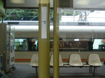 11時58分、三重県の所在地である、津(つ)駅に到着しました。 ここで、大きく入れ替わり、乗ってくる客、降りていく客とたくさんいました。 隣のホームには、アーバンライナーが停車しておりました。 |