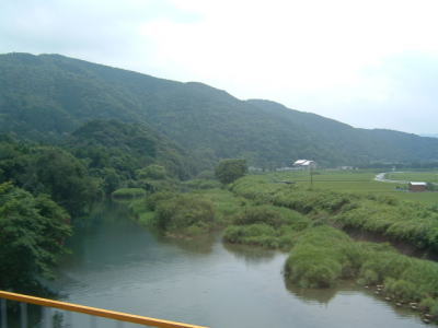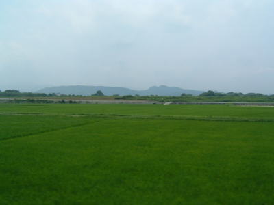 津駅を出て、市街地が離れると、田んぼ地帯を快走していきます。 |