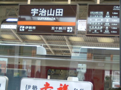 12時34分、宇治山田(うじやまだ)駅に到着しました。 ここは、伊勢神宮への最寄駅です。 |