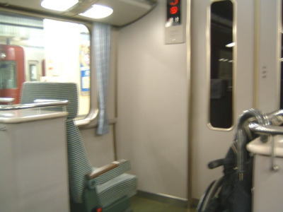 車椅子軍なので、車椅子席を確保しております。 このように車椅子席の手前は、こんな感じになっているので、上に物が置けたりして意外に便利です。 |