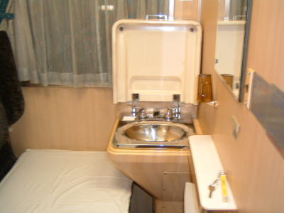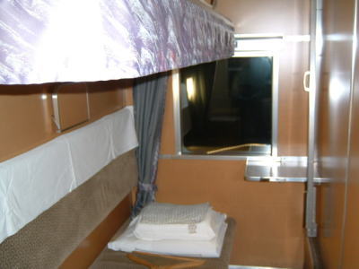 そして、おくちまんさんは、A個室寝台のシングルデラックスをとっていましたので、わたくしも見せてもらうことにしました。 これは、普通の座席状態。 |