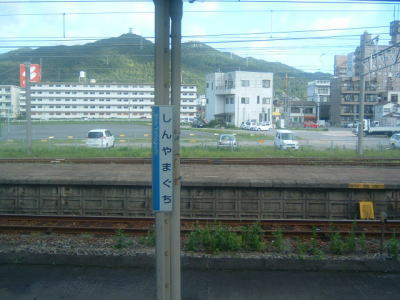 7時33分、新山口(しんやまぐち)駅に到着しました。 降りていく乗客も目立つようになりました。 |