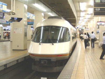 まずは、名古屋駅で、車椅子軍団と待ち合わせて、こちらの近鉄特急に乗車しました。 10時30分発のアーバンライナーの難波行きです。 |