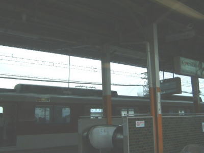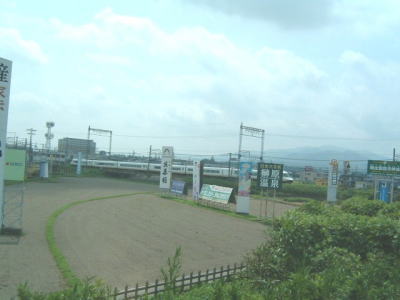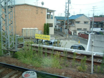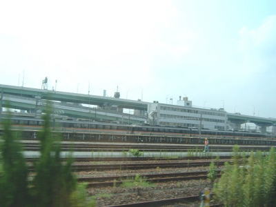 定刻どおり、名古屋駅を離れました。 地上へ出ると、JRの車両基地が見え、そこをスピードを上げて走行していきます。 |