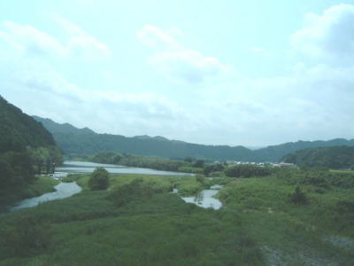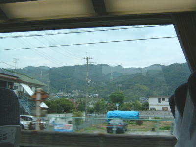 そして、近鉄大阪線に入り、スピードを上げていきます。 だんだんと山深くなってきました。 |