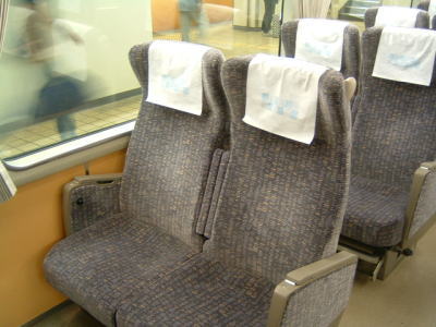 座席のカバーには、近鉄特急の絵が・・・。 このあたりも細かいですね。 |