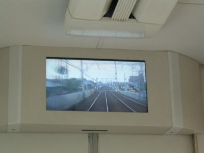 モニターには、このように前面展望が時々、表示されます。 これに、時速計までついているとよかったのですが・・・ |