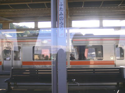 最後の停車駅、二見浦(ふたみのうら)駅に到着しました。 名古屋行きの快速「みえ」と行き違いました。 |