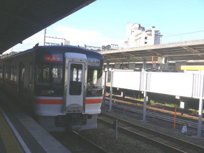 13時33分、松阪(まつさか)駅に到着しました。 隣のホームには、名松線の気動車が停車していました。 |