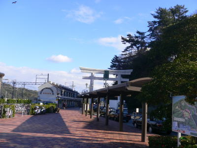 駅前には、大きな鳥居がありました。 ここでは時間がしばらくありますので、散策することにしました。 |