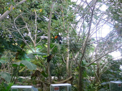 森の水辺のところへきました。熱帯のジャングルのような暑さでした。 木の上には、オニオオハシという鳥が見えました。 |