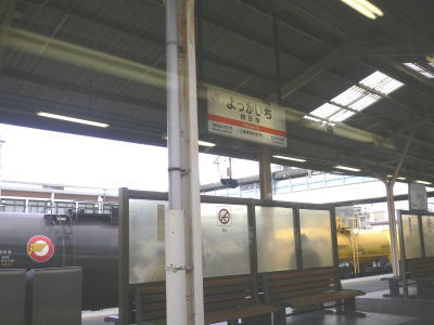 12時58分、四日市(よっかいち)駅に到着しました。 短距離利用が多く、かなりの乗客が下車していきました。 |
