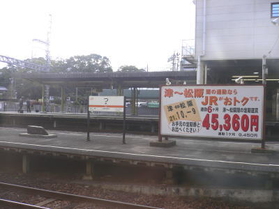 13時18分、津(つ)駅に到着しました。 三重県の県庁所在地の駅です。 ここで多数の乗客が乗り込んできました。 |