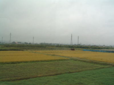 山が遠くに見え、盆地に入った列車は、今までとは違いトップスピードに近いスピードで走り始めました。