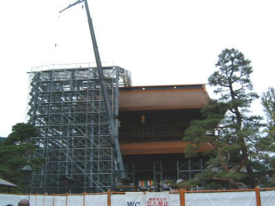 しばらく進むと山門(三門)にくるのですが、なんと工事中でした。