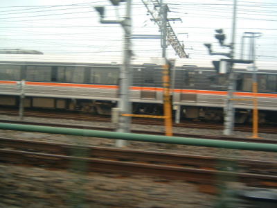 神領(じんりょう)駅を過ぎると、車両所を通過します。 ここには、特急列車や通勤列車などがたくさん見れました。 |