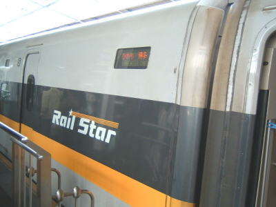 レールスターの側面、このロゴマークも良いですね。 車内清掃が終わったのは、発車5分前で、急いで乗り込みます。 |