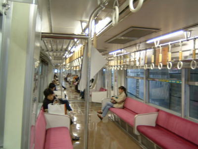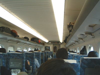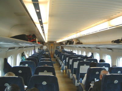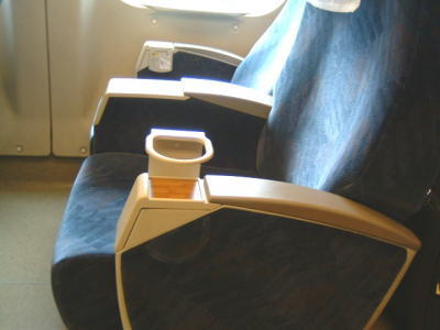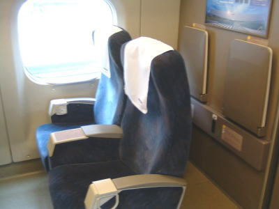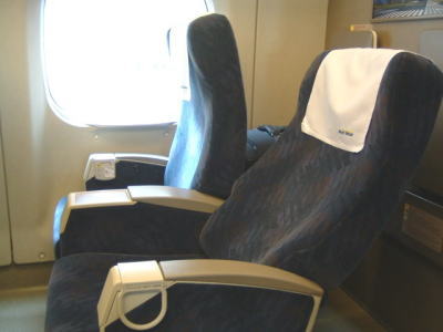 そして、こちらは、普通車指定席の車内です。 2−2列シートで、グリーン車と思わせるような座席配置になっています。 |