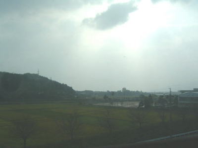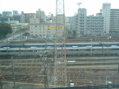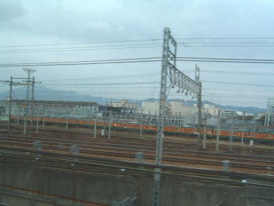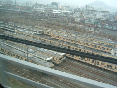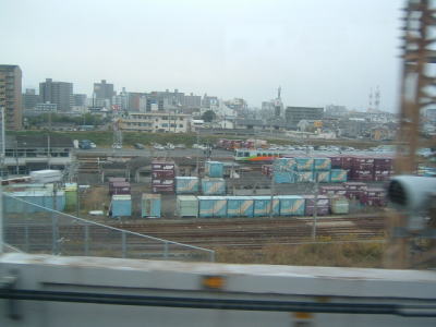 定刻どおり発車しました。 在来線の車両基地が見えていました。 |