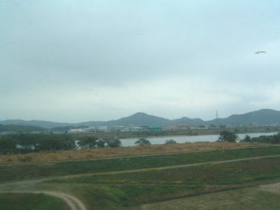最高速285kmで走行し、吉井川を渡ります。 これを渡ると、岡山駅は近いです。 |