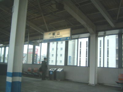 13時09分、福山(ふくやま)駅に到着しました。 すでに広島県に入っており、まだまだ乗り込んでくる乗客が多かったです。 |