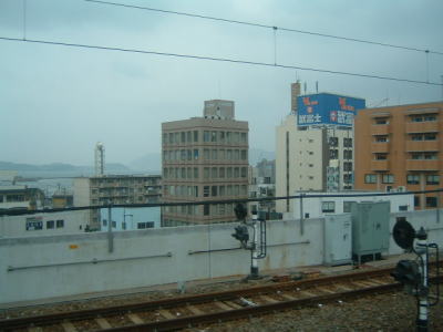 長いトンネルを数個抜けると、三原(みはら)駅を通過・・・。 このあたりは、立て続けに駅を通過していきます。 |