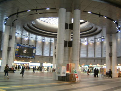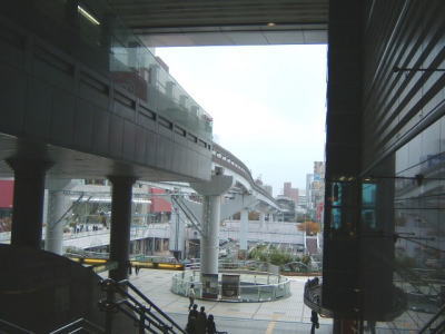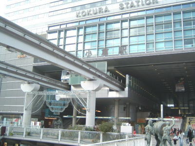 まずは、小倉駅の外に出てみることにしました。 なんと、駅ビルの中に、モノレールの駅があり、これは、異様な光景です。 |