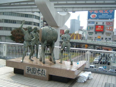 そして、連絡橋のところには、祇園太鼓という、石像がありました。