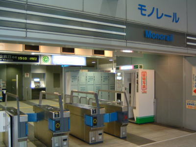 駅ビルの中から外を見ると、このようにモノレールの線路が続いています。 |