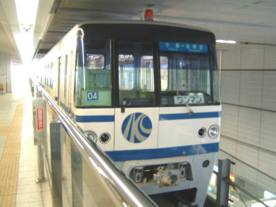 そして、すでにモノレールが停まっていました。 上にあるパトランプが印象に残るモノレールの車両でした。 |