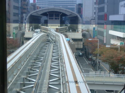 わたくしは、一番後ろの後方展望へ。 モノレールの分岐もこのような感じになっていました。 |