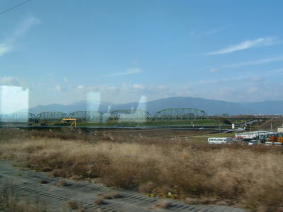木曽川橋梁を時速120kmで走行して、岐阜県へと入ります。