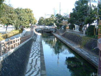 数分歩くと、水門川にきました。 この川沿いを中心に散策することに・・・ |