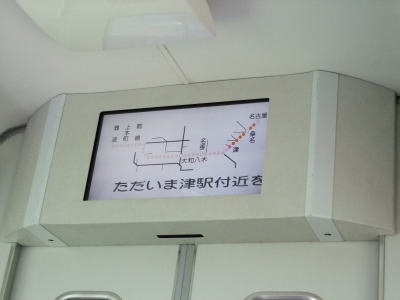 そして、車端部には、大きなモニターがあり、いろいろな案内がありました。 |