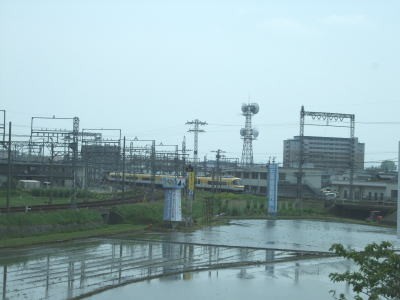 11時、定刻どおり名古屋駅を離れました。 トンネルを出ると、すぐに車両基地が見え初めて、たくさんの近鉄の車両を見ることが出来ました。 |