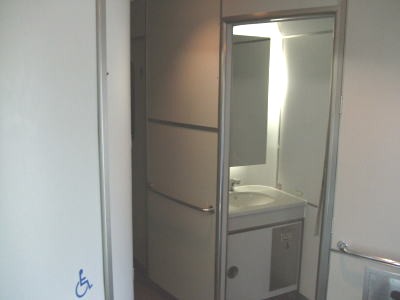 早速、車内へと入っていきます。 アーバンライナーは、改良によって、車椅子スペースや専用トイレなどがあります。 |